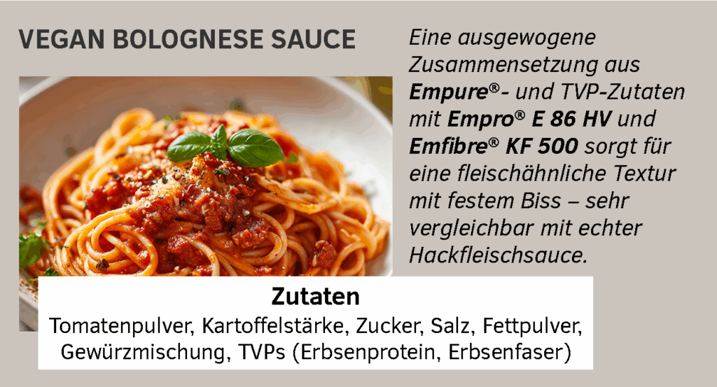 Um diesen Anforderungen gerecht zu werden, bietet die Emsland Group die Produktlinie Empure® – ein Clean-Label-Sortiment auf Basis von Kartoffeln und Erbsen. Empure®-Produkte bieten eine natürliche Textur und einen natürlichen Geschmack und sind speziell dafür entwickelt worden, Produkte mit E-Nummern – wie modifizierte Stärken und Kartoffelflocken – in verschiedenen Anwendungen zu ersetzen. Ergänzt wird das Emsland Group Portfolio durch Proteine, Fasern und Granulate für eine gezielte Kombination und Optimierung der gewünschten Eigenschaften im Endprodukt.