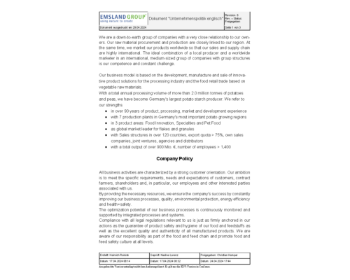 Do you have any questions remaining one of our high-quality potato products, the Emsland Group or your career opportunities in our company? Then feel free to contact us via our contact form. We will get back to you promptly.