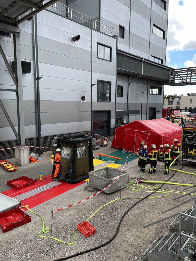 With this realistic scenario, the emergency services trained their coordinated response to a chemical accident. We would like to thank the members of the DLRG Lingen, who acted as casualties and made the situation feel even more real, as well as all those involved for their tremendous commitment and professional cooperation.