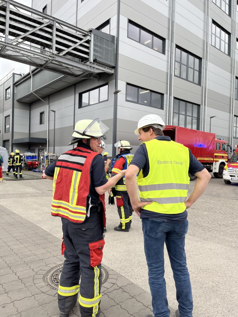 In the end, all affected people were rescued and the leak successfully sealed. After the exhausting hours, the fire brigade and rescue teams gathered, visibly relieved, in the Emsland Group canteen: