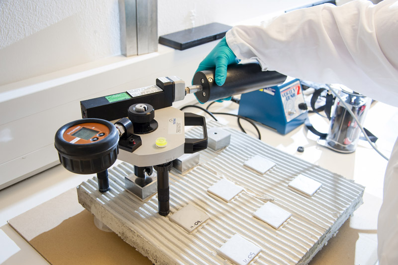 Solutions are not developed in isolation—they are part of an ongoing, collaborative process with customers, designed to ensure that each formulation functions effectively. Application experts test the products’ final performance by using equipment such as ultrasonic devices, tensile strength machinery, spreading tables and viscosimeters to determine exact values relating to characteristics such as viscosity, dimensions, water retention, hardening, open time, consistency, strength and slip of the products. In this way, the product is sure to perform as desired under the customer’s specific construction environment.