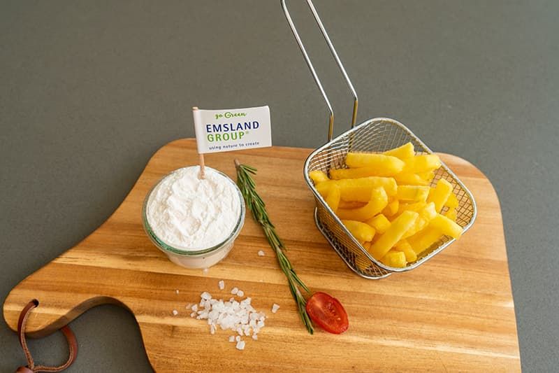 Potato flakes are important ingredients for potato croquettes. The Emsland Group offers Emflake® 3815 for potato croquettes and has also developed Empure® EJEL 100, a specialty pea starch for this application. Due to the inherent gelling properties of pea starch, a fast set can be achieved that remains stable during frying and prevents leakage or bursting of the croquette.